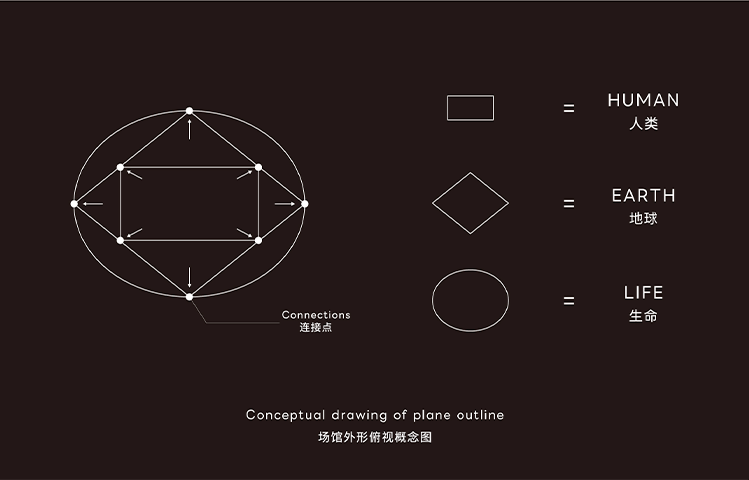 三菱未來館的代表設(shè)計師松井先生覺得在這個星球上,人與人相識或者產(chǎn)生各種類型的關(guān)聯(lián),這是一種非常神奇的“聯(lián)系”。他認(rèn)為世界和地球的聯(lián)系也是如此。因此,這個展館的設(shè)計中設(shè)計師們通過各具意義的建筑形狀之間的相互連接,表達(dá)了生命與人類、人類與地球、地球與生命之間相互支持、相互關(guān)聯(lián)的設(shè)計理念。